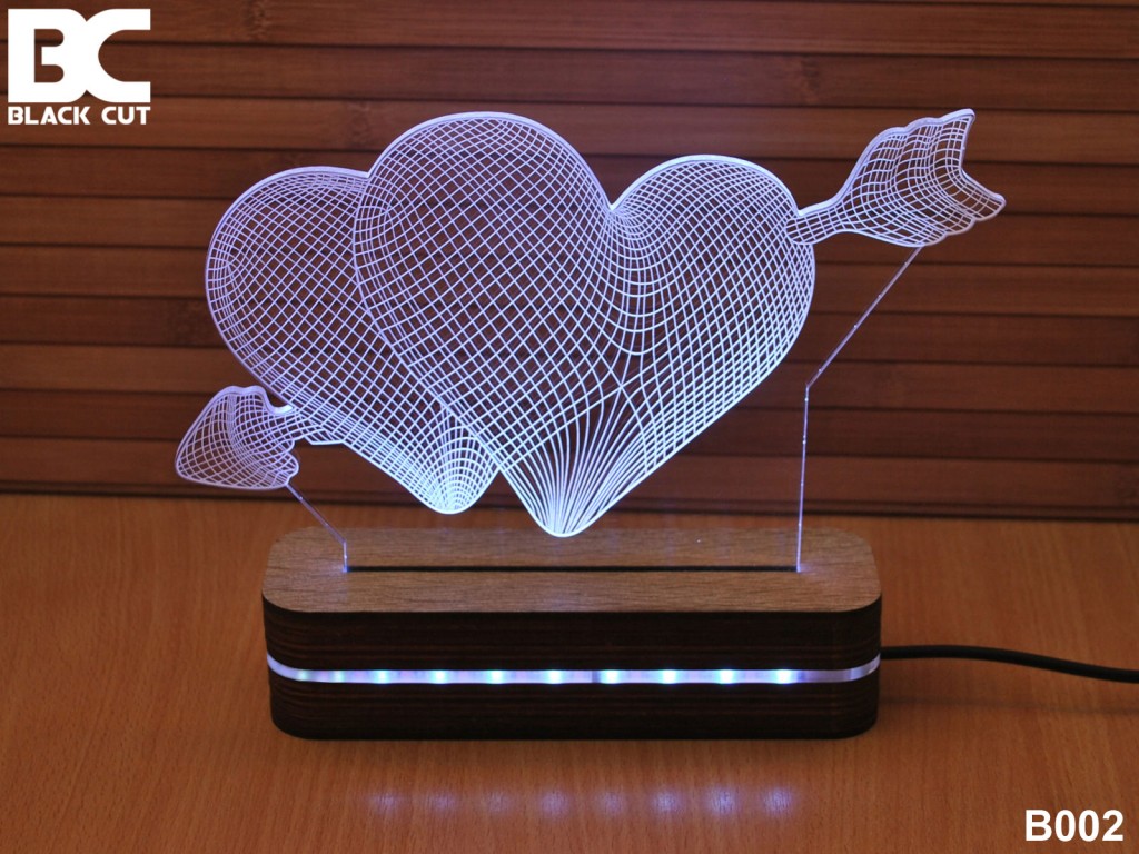 Dekorativna 3D lampa Srca Strela u hladno beloj boji