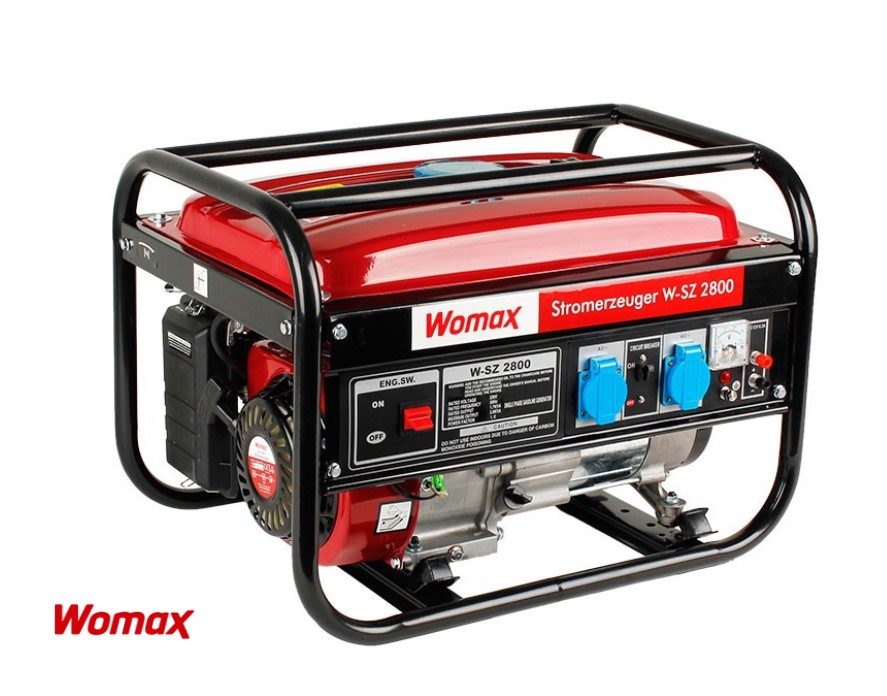 Agregat W-SZ 2800 Womax. Automatska regulacija napona osigurava da kolebanje napona generatora ostane unutar granica garantovanih od strane dobavljača električne struje, tako da ne predstavljaju opasnost po električne uređaje.