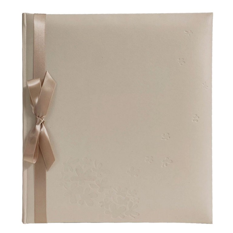 - Foto album sa 200 slip in džepova za fotografije 13x18cm, u sopstvenoj kutiji. Album je sedefno krem boje sa elegantnom mašnom šampanj boje. Korice su sa diskretno utisnutim printom leptirića. Pored svake fotografije je memo prostor za upisivanje datuma ili komentara. Upakovan je u ukrasnu kutiju. Dimenzije albuma su 27x24cm.