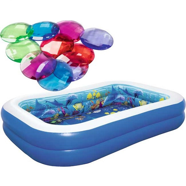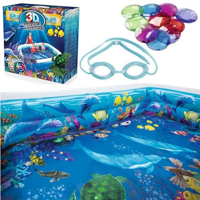 - U kompletu dolazi: Bazen sa 3D crtežima, 2 x naočare za plivanje 3D, kristali za igru, set za popravku bazena