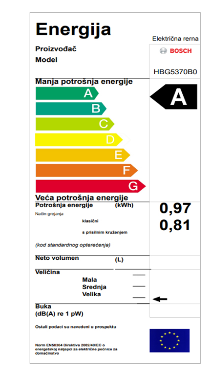 - Potrošnja energije po ciklusu pri uobičajenom načinu rada: 0.97 kW