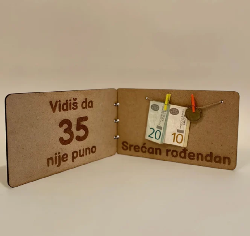 - Drvena koverta predstavlja idealan način da svoj novčani poklon učinite još posebnijim i personalizovanijim.