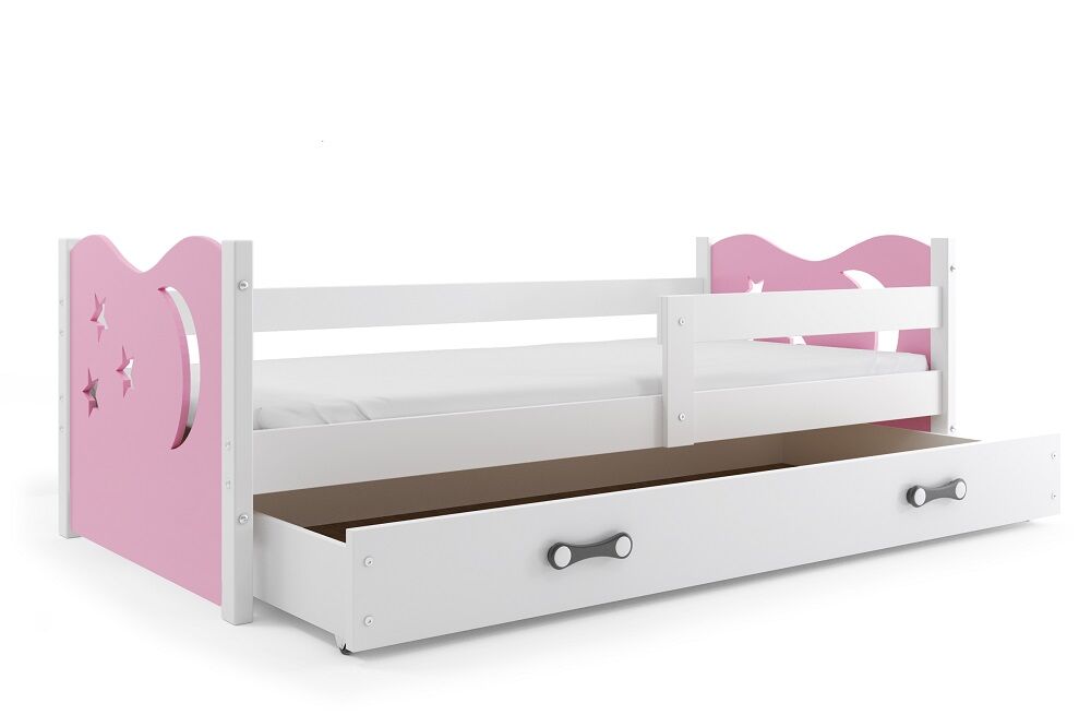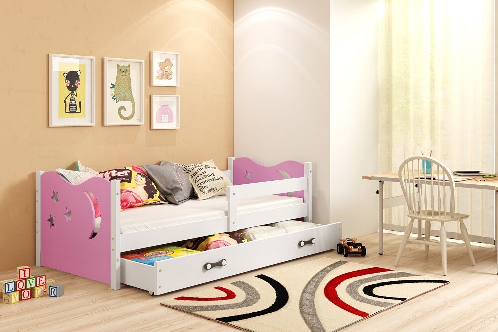 Dečiji krevet Elegant White roze 160x80 cm sa fiokom i dušekom.