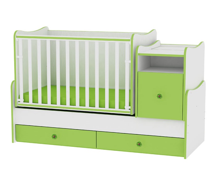 - Sastoji se iz tri dela koji čine jednu celinu (kolevka, krevetac za odraslo dete i ormarić)