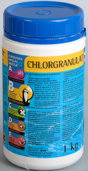 Hlorgranulat je najpogodnije sredstvo za podešavanje sadržaja hlora, koji sadrži 56% aktivnog hlora. Štiti vodu u bazenima od razmnožavanja bakterija, algi i gljivica. Brzo se rastvara u vodi tako da odmah deluje. Preporučuje se upotreba pri punjenju bazena, pri dopunjavanju svežom vodom ili kod brze intervencije. Moguće je i kontinuirano doziranje. Kod plastičnih bazena i bazena sa plastičnom folijom sme se koristiti samo u razblaženom stanju.