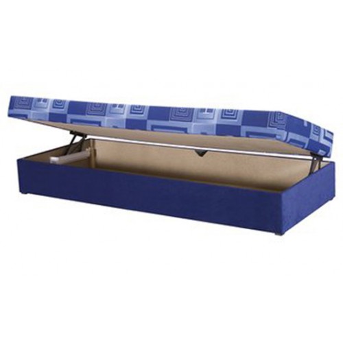 Udoban krevet Bluu sa prostorom za odlaganje, sa ramom od borovine i punjenjem od pene. Pamučna navlaka u plavoj boji.