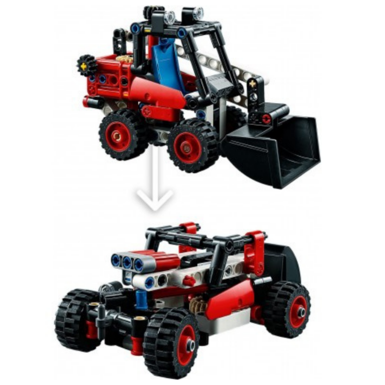 LEGO®Technic Mini-utovarivač sa 4 velika točka, ovaj utovarivač je spreman za akciju. Podignite i nagnite kašiku da pokupite materijal, baš kao i pravi utovarivač. Otvorite sigurnosni kavez i pronaći ćete kabinu vozača sa sedištem i kontrolnim panelom. Od uređenja terena do radova na putu, ova mašina ne staje. Kada budete spremni za više, transformišite ga u kul hot rod.