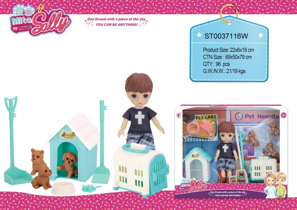 - Lutkica dečak veterinar sa kućicom za pse, kucama i aksesoarom