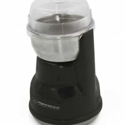 Moderno dizajniran električni mlin za kafu, veoma lak za rukovanje. Motor snage 120 - 160 W sa lakoćom pokreće noževe od nerđajućeg čelika koji fino usitnjavaju zrna kafe, do 50g u jednom turnusu. Mlin za kafu Esperanza EKC002K poseduje sigurnosni prekidač i zaštitu od rada bez poklopca. Ovaj mali moćni mlin za kafu idealan je za ljubitelje kafe jer poznato je da kafa ima najbolji ukus kada je sveže samlevena.