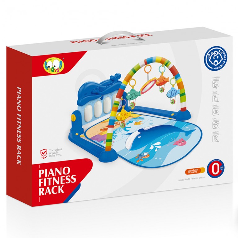- Sunđerasti luk-plastično postolje za zvečke,četri plastične zvečke u oblicima morskih životinja, ogledalce u obliku cveta i mini piano sa četri tastera koji proizvode zvučne efekte prilikom pritiska bebinom nogicom.