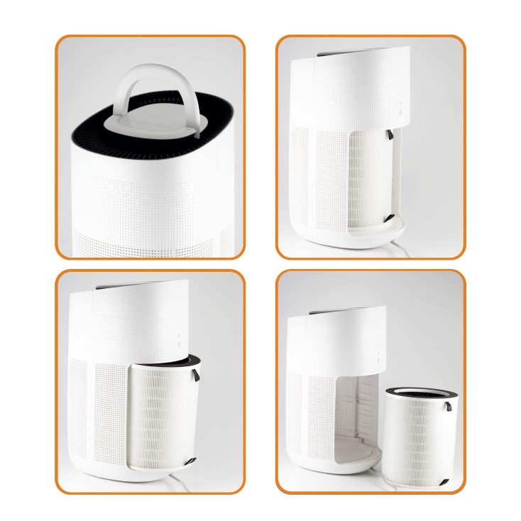 - Svetlosnom indikacijom prikazuje kvalitet vazduha, a poseduje i indikaciju za zamenu filtera (svakih 2200 sati rada)