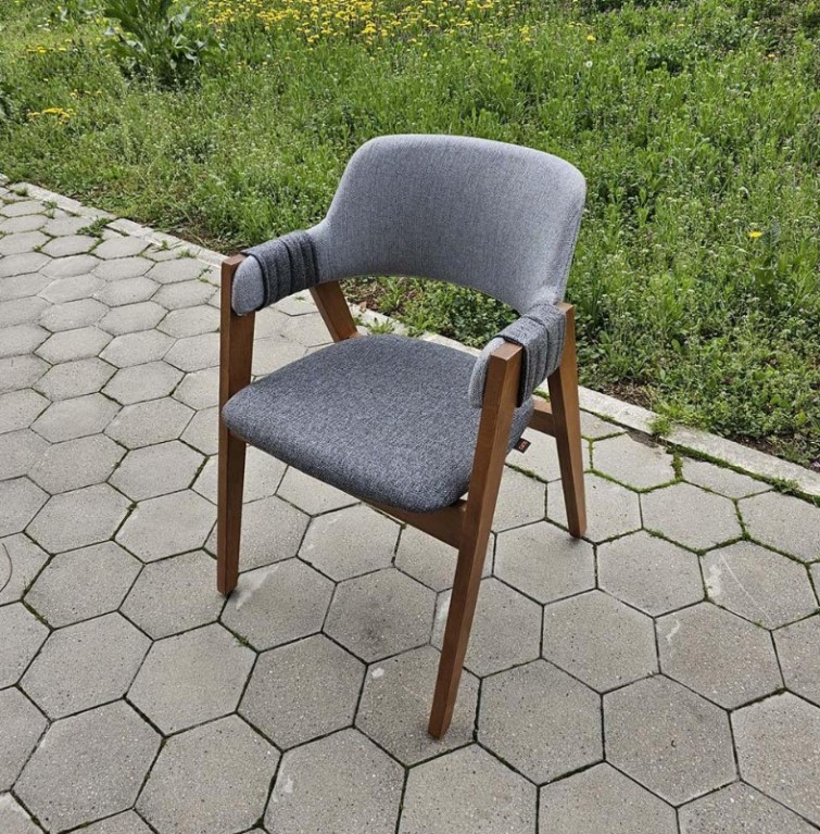 Materijal: Drvo, Mebl, Plastika Stolica izradjena od drveta, tapacirana u meblu, izdrzljiva i jednostavna za odrzavanje.