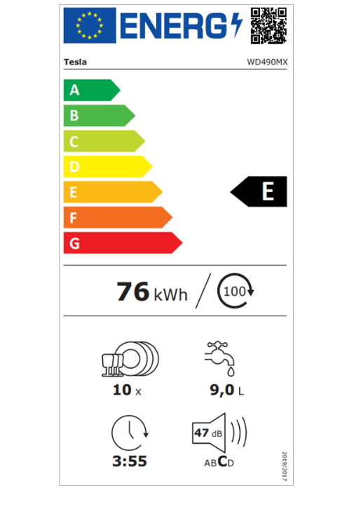 - Klasa energetske efikasnosti (EN60436) - E