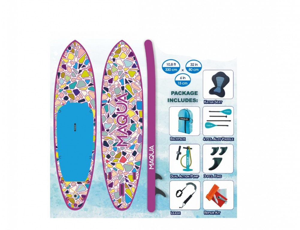 - MAQUA TILES KAYAK KIT je univerzalna varijanta za SUP sportove i pratec´i priložena uputstva, svaki clan porodice može lako da pocne da vesla.