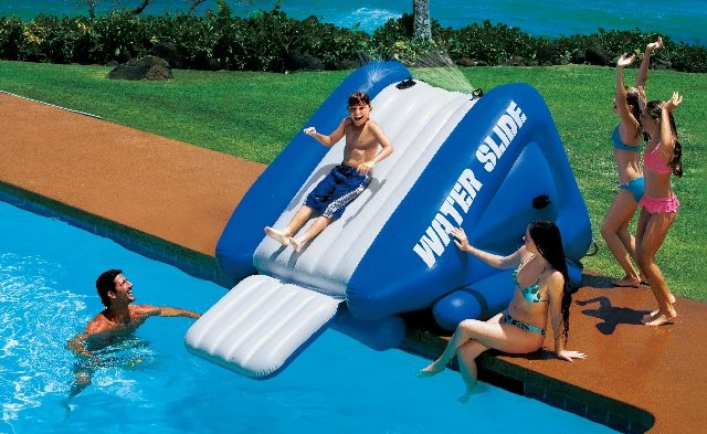 Pretvorite bilo koji bazen u vodeni park ovog leta uz pomoć ovog Intex tobogana. Veoma lak za nameštanje, samo ga naduvajte, prikačite baštensko crevo i zabavljajte se !!!dimenzije 302 x 206 x 135cm