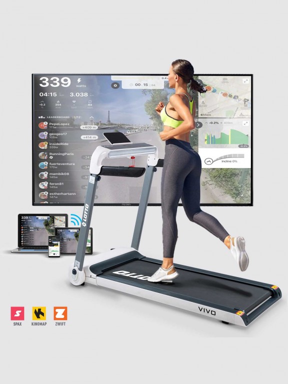 • Trčite slobodno kroz život uz Lotto Fitness VIVO električnu traku za trčanje. Sa snažnim motorom do 2,5 KS i širokim opsegom brzina koje dostižu i do 15 km/h, vaš trening će ga podići na sledeći nivo. Velika površina za trčanje veličine 121 k 46 cm nudi dovoljno prostora da raširite svoje korake i postignete svoje ciljeve. A za još impresivnije iskustvo, možete da sinhronizujete preko Bluetooth-a sa Anirun/Kinomap aplikacijama za ličnu kontrolu nad vašim vežbanjem.