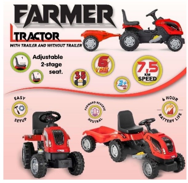 Traktor sa prikolicom na akumulator 6V, crveni 309680