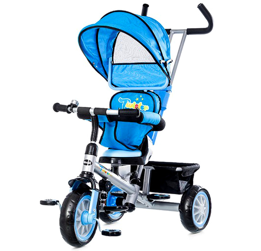 Dečiji tricikl ima tendu za zaštitu od sunca, korpu za igračke, ručku za guranje. Postolje za stopala da se odmore od okretanja pedala. Savršen tricikl za uživanje.