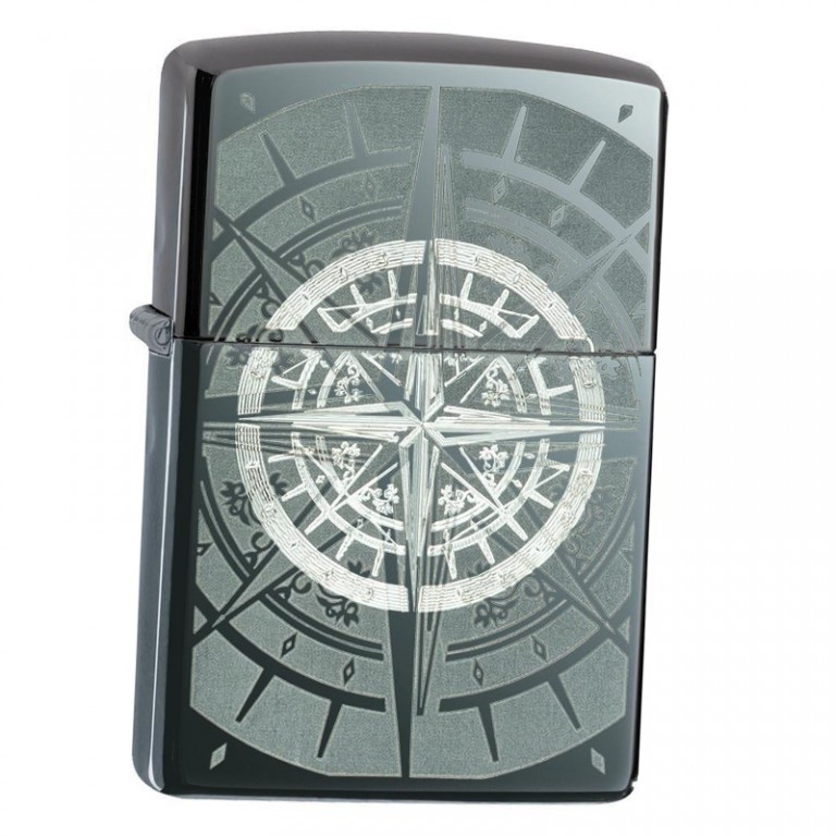 Retro izgled metalik-crne osnove i gravure kompasa čine ovaj Zippo upaljač vrlo posebnim