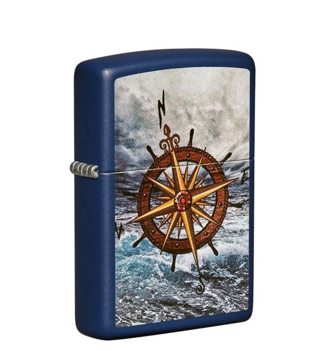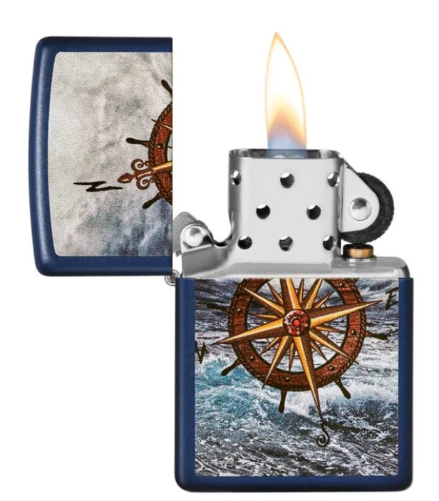 Zippo sa gravurom kompasa u boji – izrađen je od kvalitetnog metala sa teget plavom mat završnicom. Kvalitetna izrada i tradicionalni dizajn Zippo upaljača daje mu odliku svevremenosti. Idealan poklon za sve one koji žele praktičan upaljač svedenog dizajna. Dolazi u originalnoj poklon kutiji.