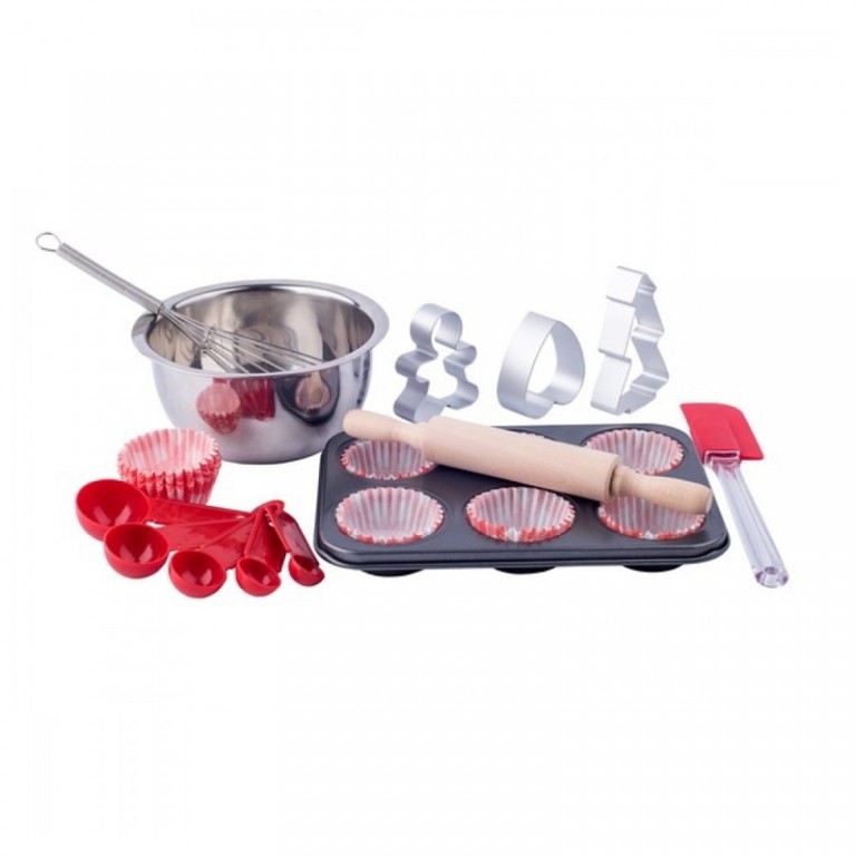 - Kuhinjski set sadrzi sve sto je potrebno za pecenje slatkih delikatesa, a posebno mafina: posudu sa mikserom,teflonskom posudom za pecenje kolacica, valjak i ostale delove