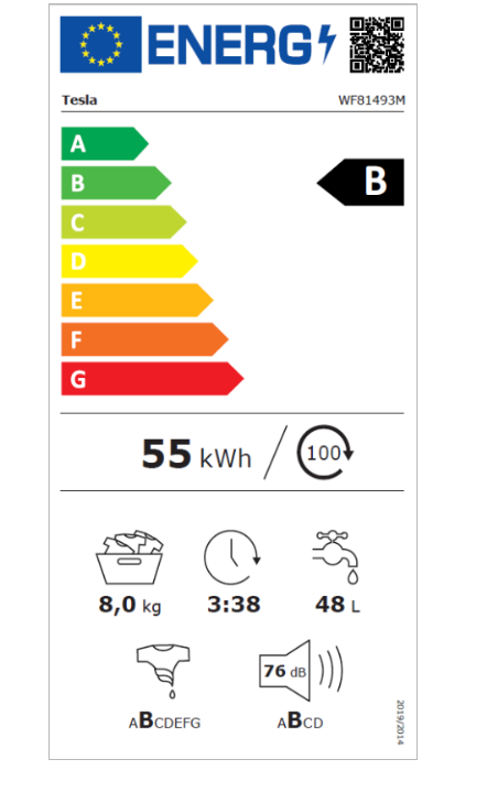 - Potrošnja energije po ciklusu: 55 kWh/100 ciklusa