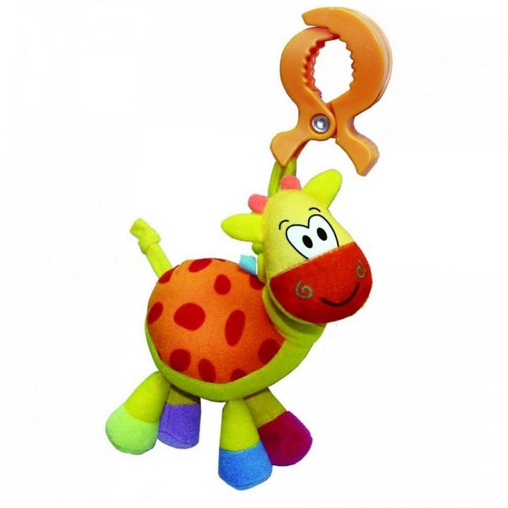 • Sa gornje strane igračke se nalazi zakačaljka u formi štipaljke uz pomoć koje se žirafica može zakačiti na bilo koje željeno mesto: krevetac, kolica, sedište automobila