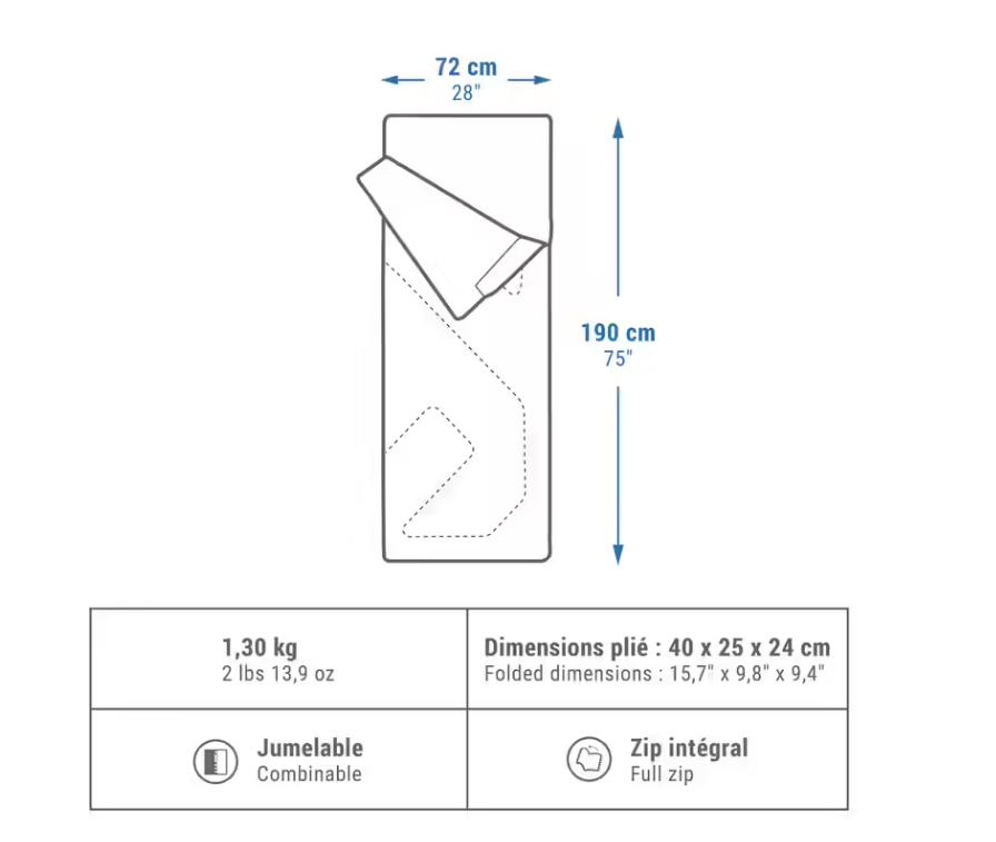 - Spaja se u dvostruku vreću za dve osobe: spojite 2 slične vreće za spavanje.
